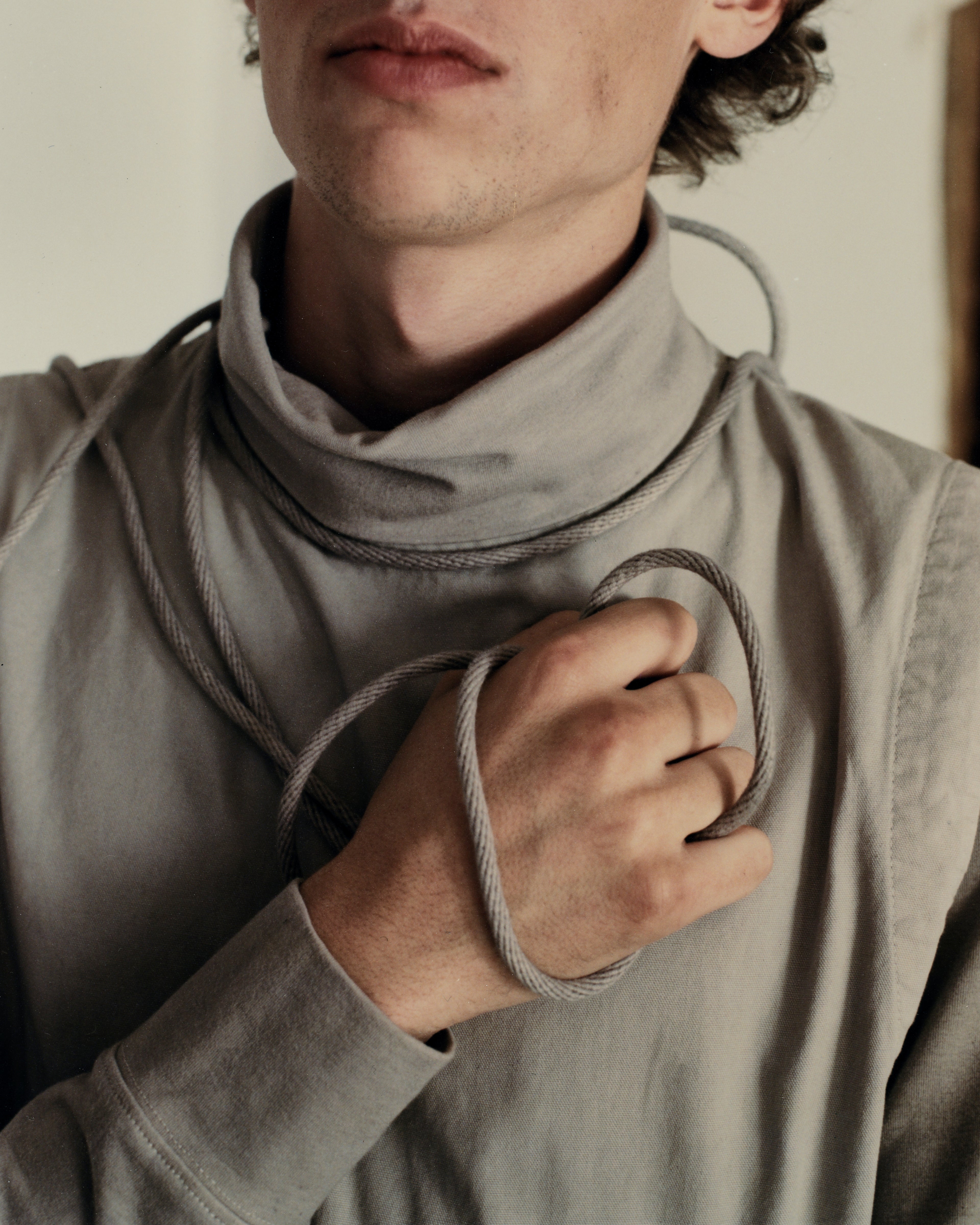 Junaux 00 holds the violence found in losing parts of oneself in tension with the restraint necessary for true growth. At the intersection of these extremes, a balanced uniform emerges: nine interchangeable capsule pieces blending utilitarian workwear and delicate self expression. A system that allows one to be unfettered from the noise of trend and expectation.